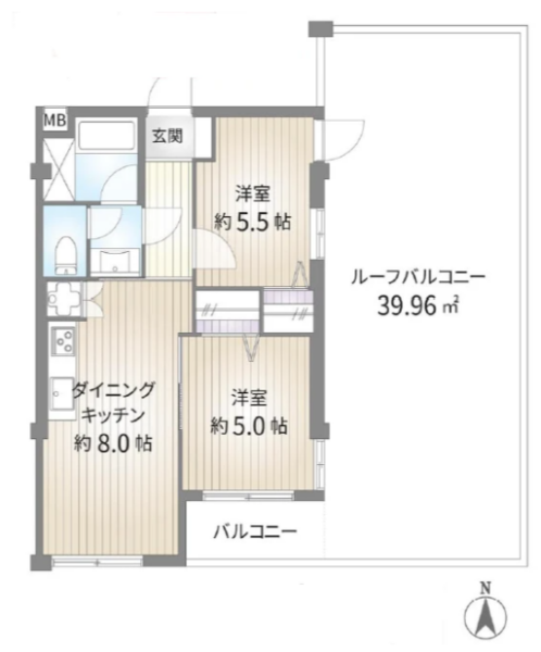 5階角部屋 ルーフバルコニー39.96m²付き