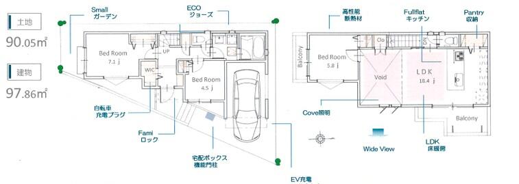 | 土地面積 | 90.05m² | 建物面積 | 97.86m² |